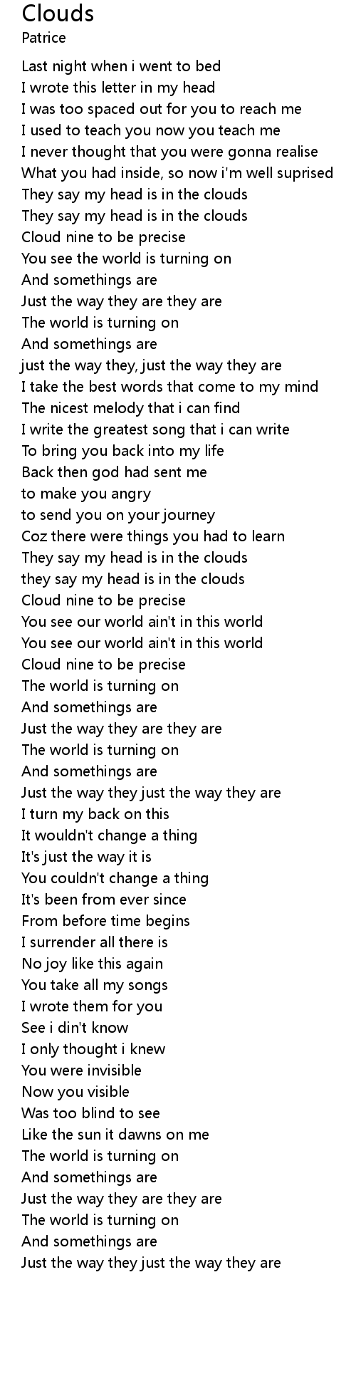they say my head is in the clouds |