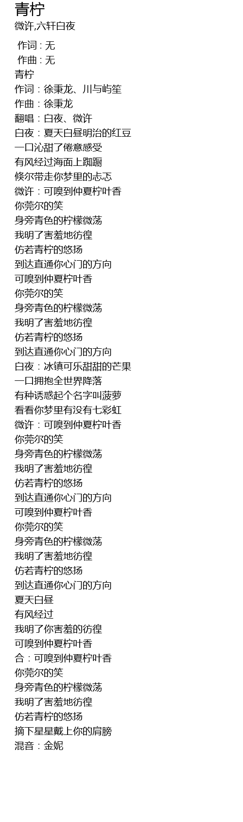 | [00:45.788] | 可嗅到仲夏柠叶香 |