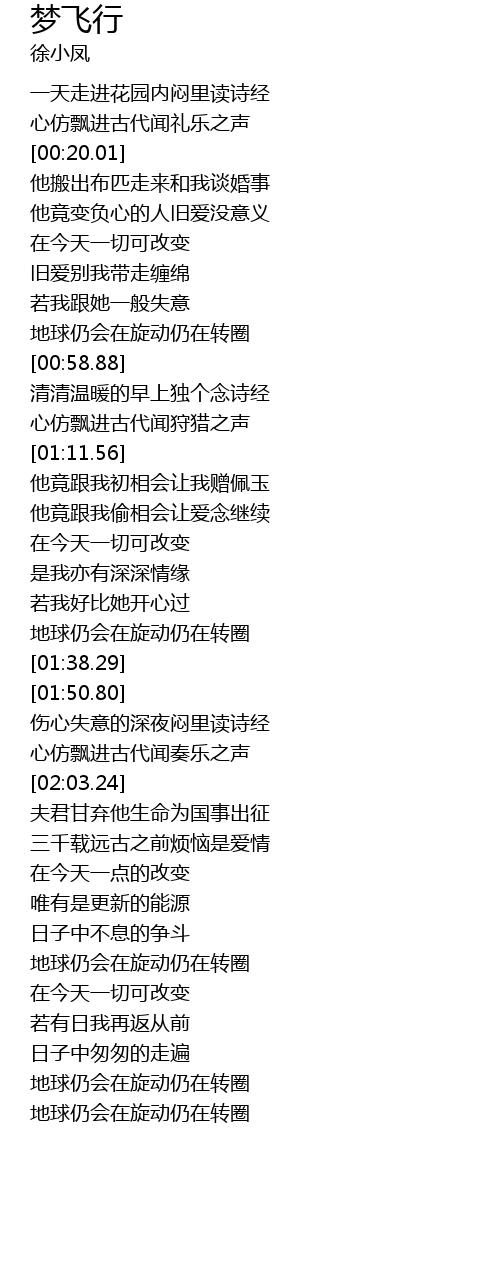 | [01:30.72] | 地球仍会在旋动仍在转圈 |