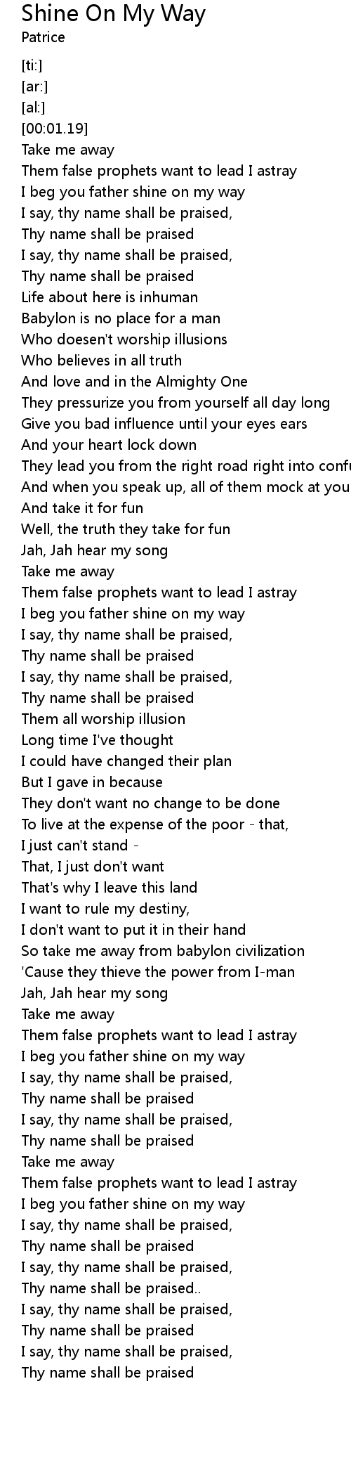 I beg you father shine on my way |