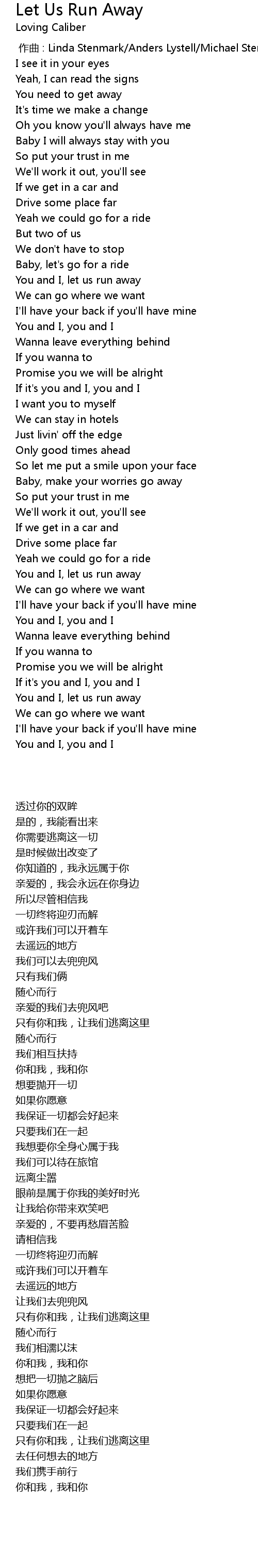 | [00:00.000] | 作曲 : Linda Stenmark/Anders Lystell/Michael Stenmark |