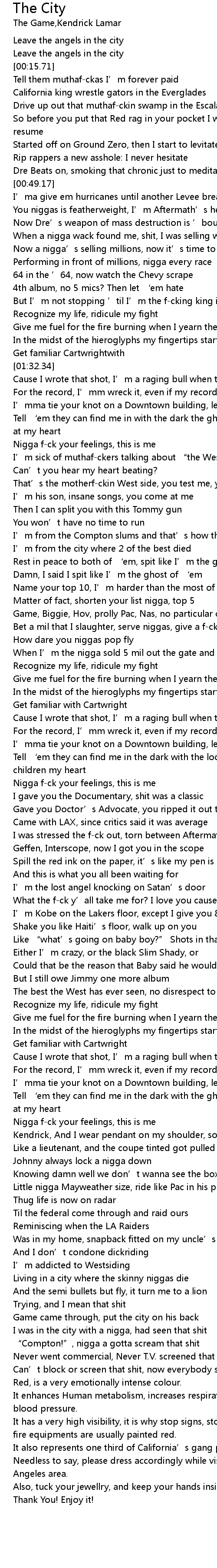 | [00:34.76] | So before you put that Red rag in your pocket I wanna see your f-ckin resume |