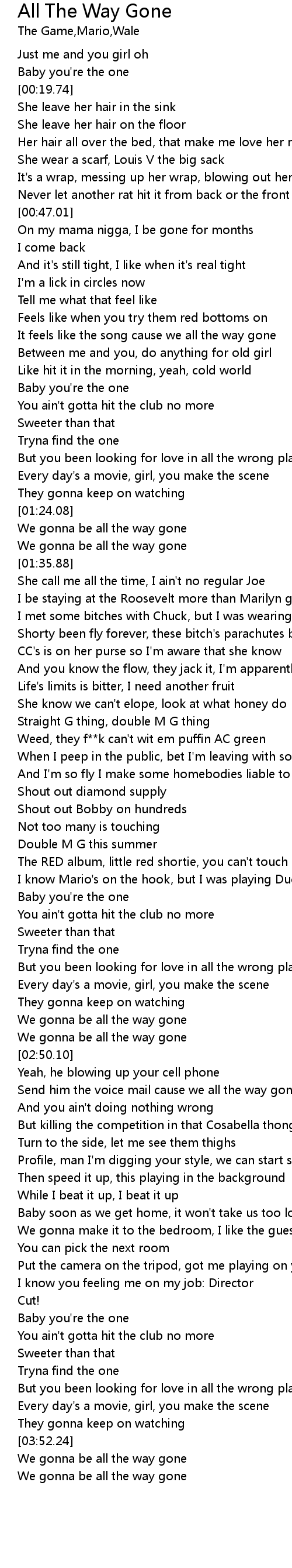| [02:53.96] | Send him the voice mail cause we all the way gone |