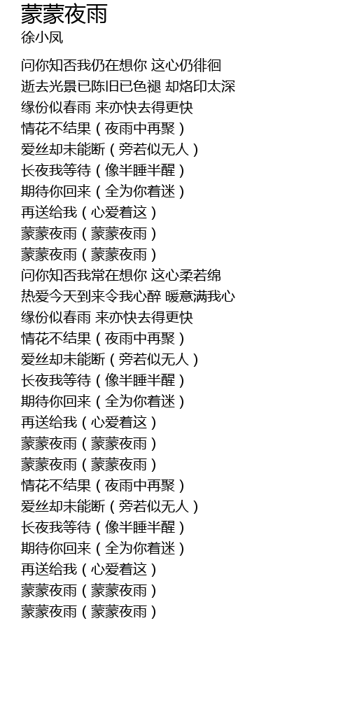 | [02:02.12] | 蒙蒙夜雨(蒙蒙夜雨) |