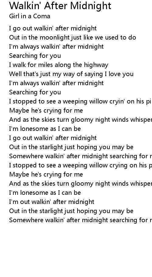 I'm always walkin' after midnight |