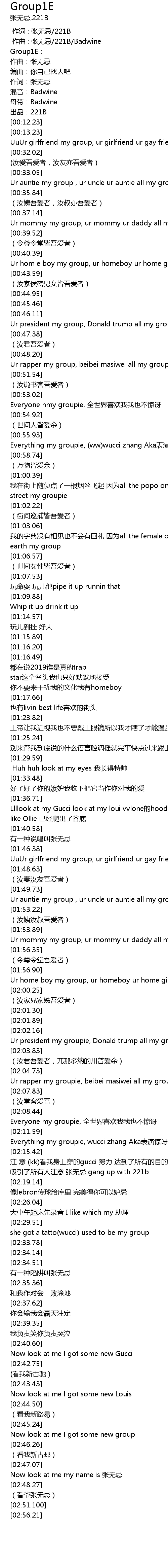 | [01:52.62] | Ur auntie my group , ur uncle ur auntie all my group |