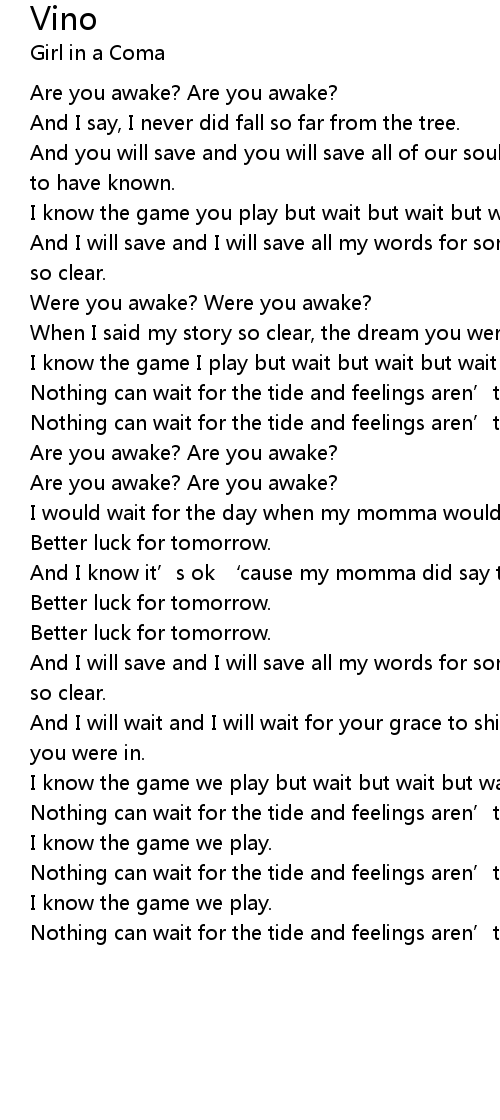 | And I will wait and I will wait for your grace to shine in my eyes, the dream you were in. | |