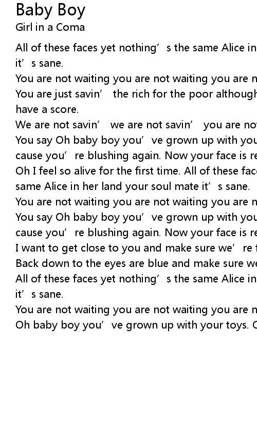 | You say Oh baby boy you' ve grown up with your toys and now your face is red cause you' re blushing again. Now your face is red cause you' re blushing. | |