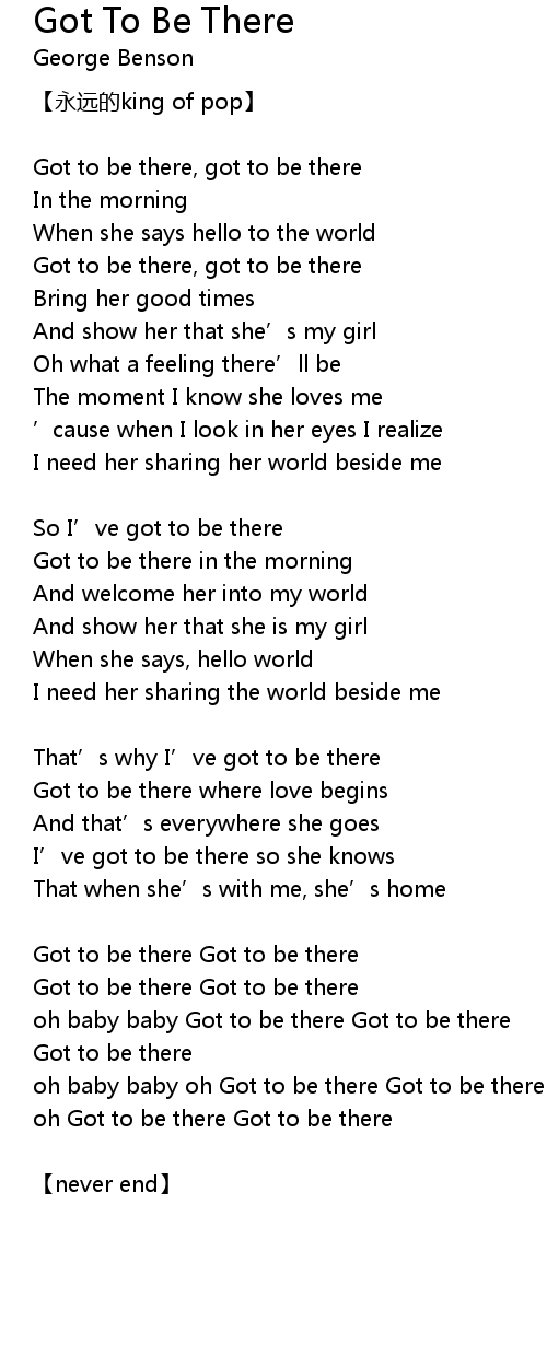 | Got to be there, got to be there | |