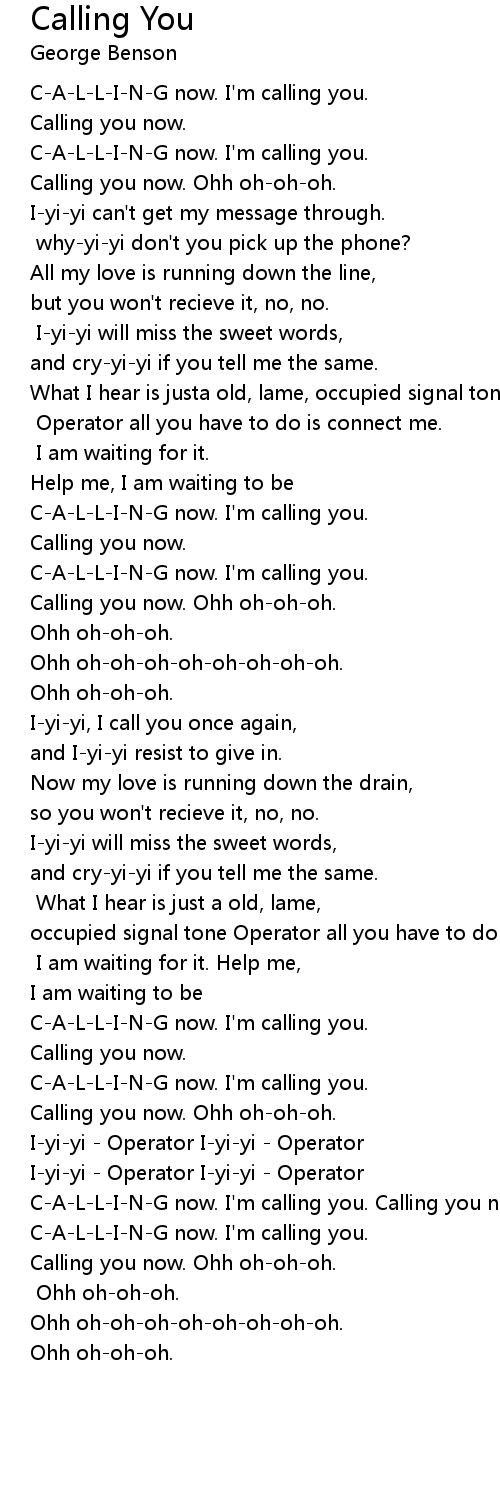 | Calling you now. Ohh oh-oh-oh. | |