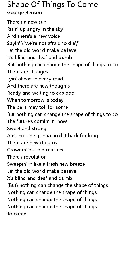 But nothing can change the shape of things to come |
