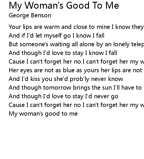 Cause I can't forget her no I can't forget her my woman's good to me |