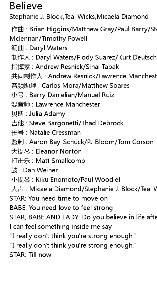 | [00:08.320] | 人声 : Micaela Diamond/Stephanie J. Block/Teal Wicks |