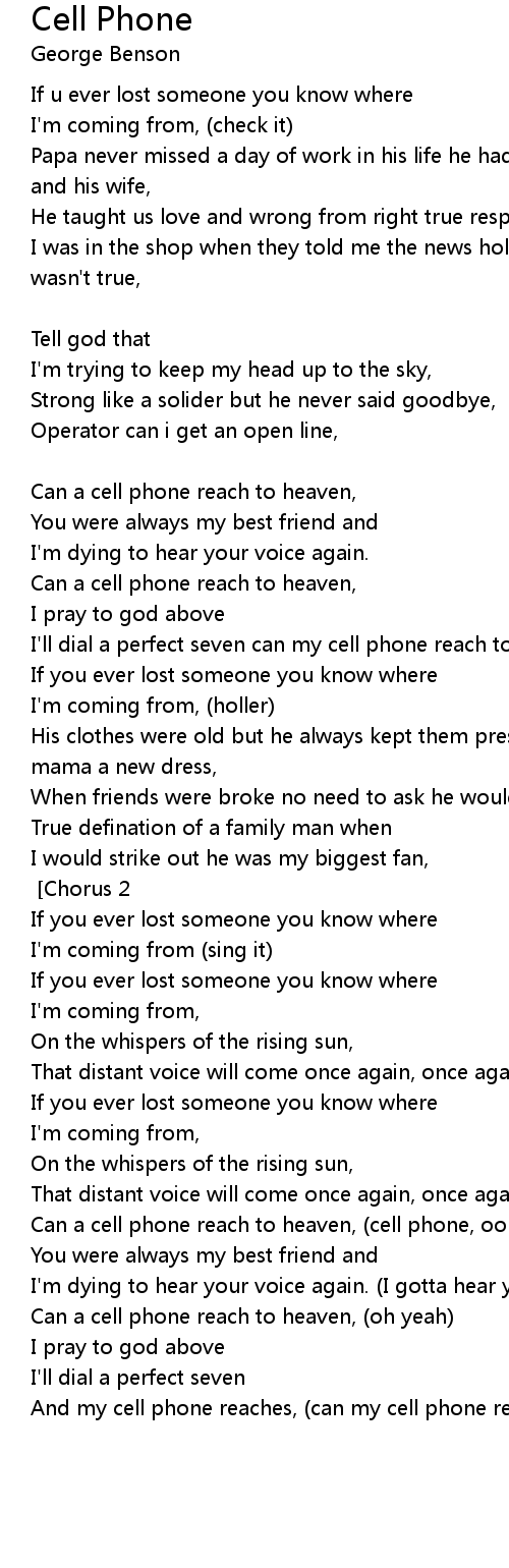 And my cell phone reaches, (can my cell phone reach to heaven) [Chorus 2x] |