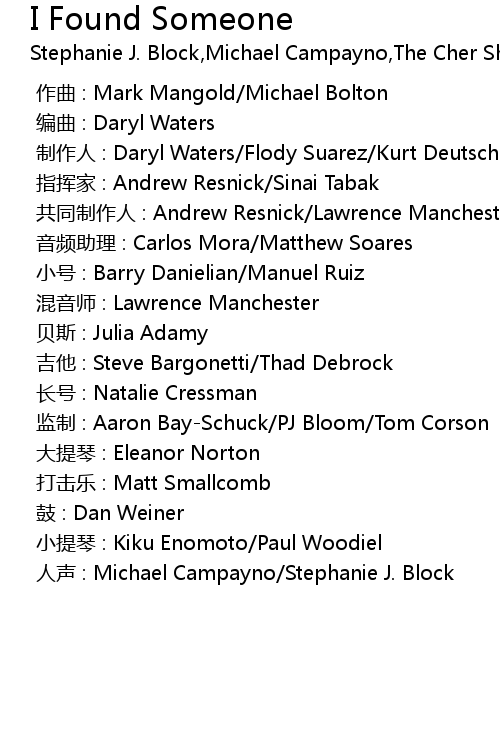 | Song | I Found Someone |