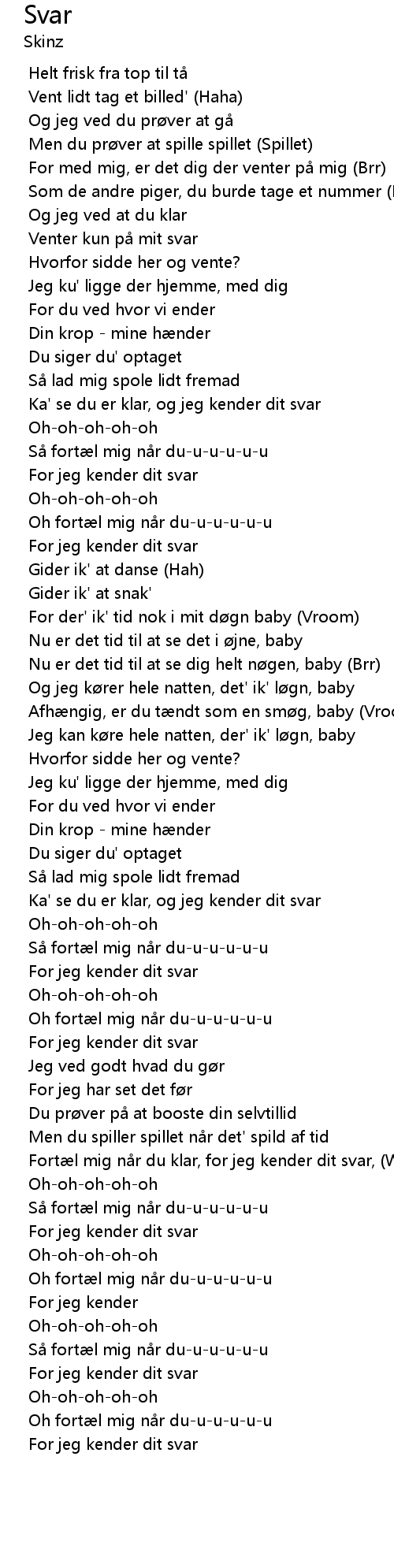 | [02:07.508] | Fortæl mig når du klar, for jeg kender dit svar, (Whou) |