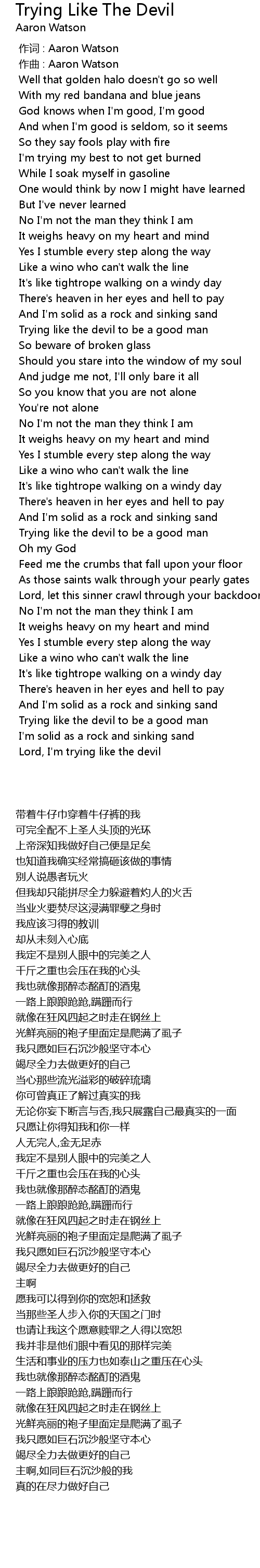 | [00:01.000] | 作曲 : Aaron Watson |