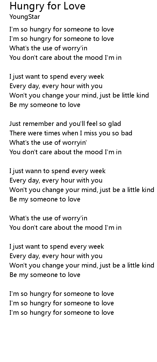 I'm so hungry for someone to love |