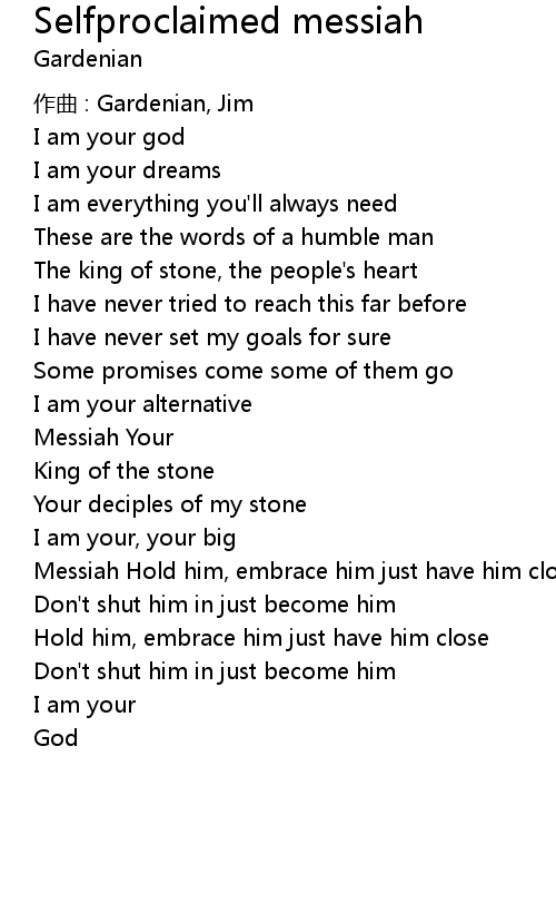 | Song | Selfproclaimed messiah |