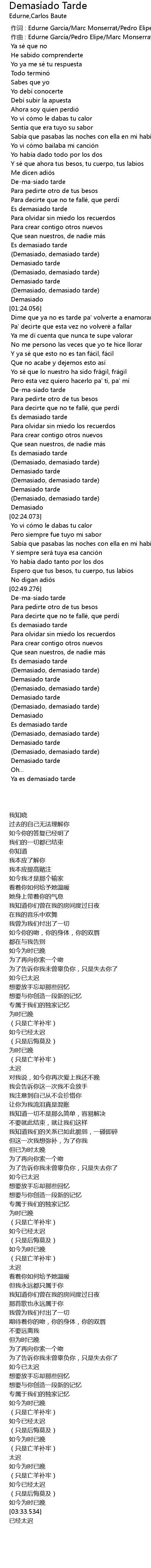 | [03:30.376] | (Demasiado, demasiado tarde) |