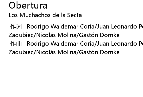| [00:00.000] | 作词 : Rodrigo Waldemar Coria/Juan Leonardo Portela/Nicolás Zadubiec/Nicolás Molina/Gastón Domke |