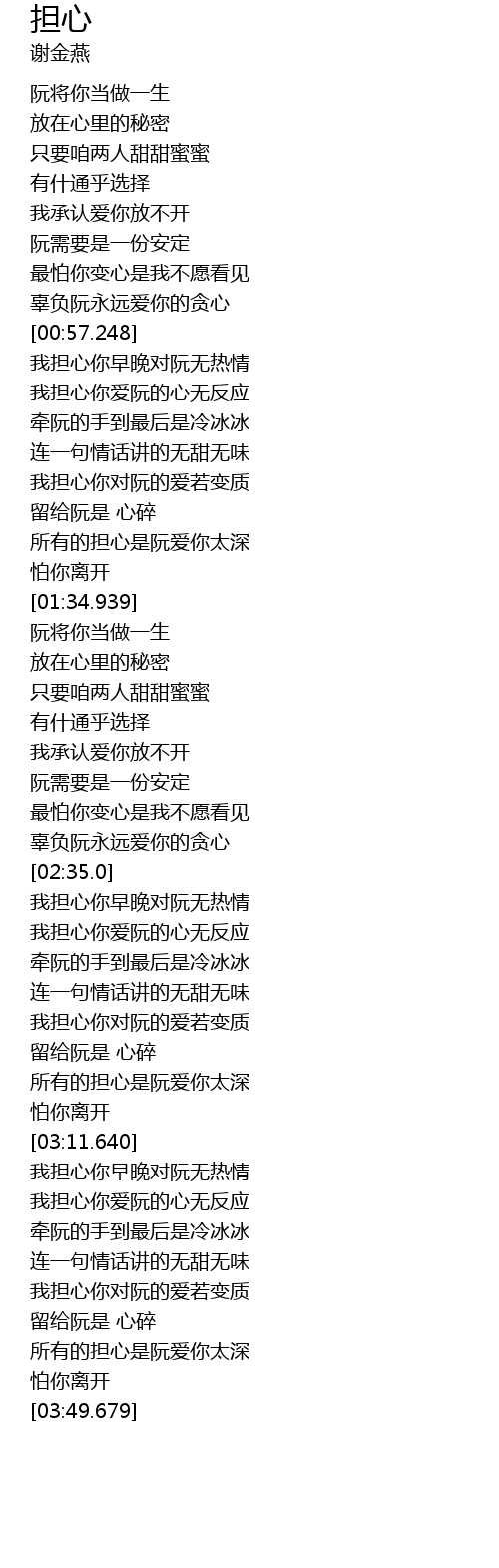 | [03:16.690] | 我担心你爱阮的心无反应 |
