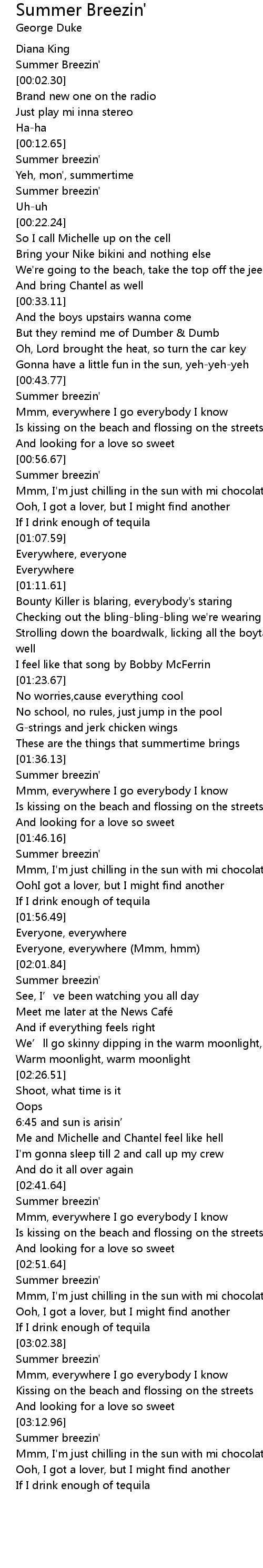 | [00:59.65] | Mmm, I' m just chilling in the sun with mi chocolate bun |