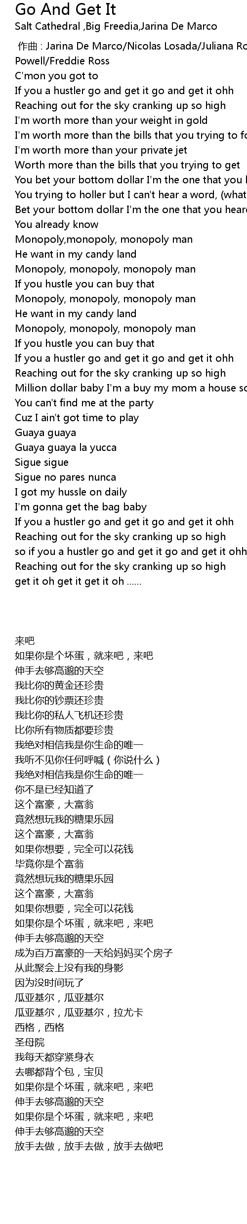 | [01:45.913] | so if you a hustler go and get it go and get it ohh |