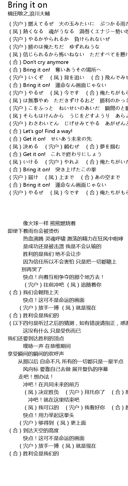| [02:31:00] | hé Bring it on! tū shàng quán |