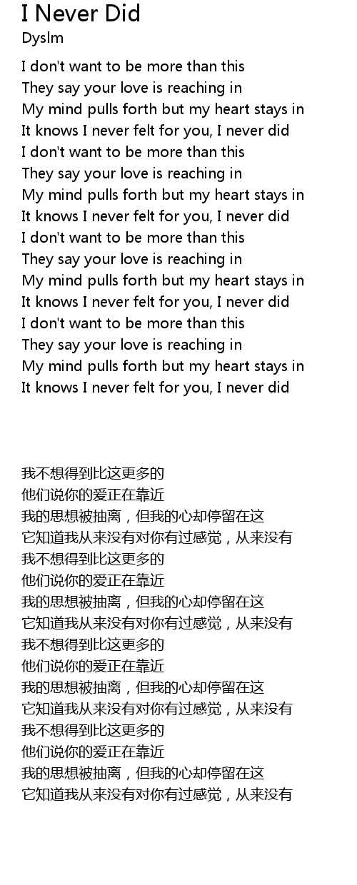 It knows I never felt for you, I never did |