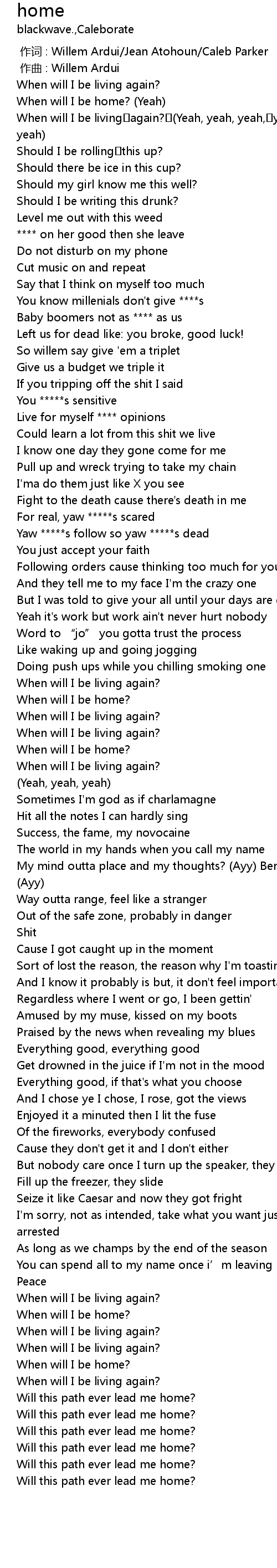 | [00:04.064] | When will I be home? (Yeah) |