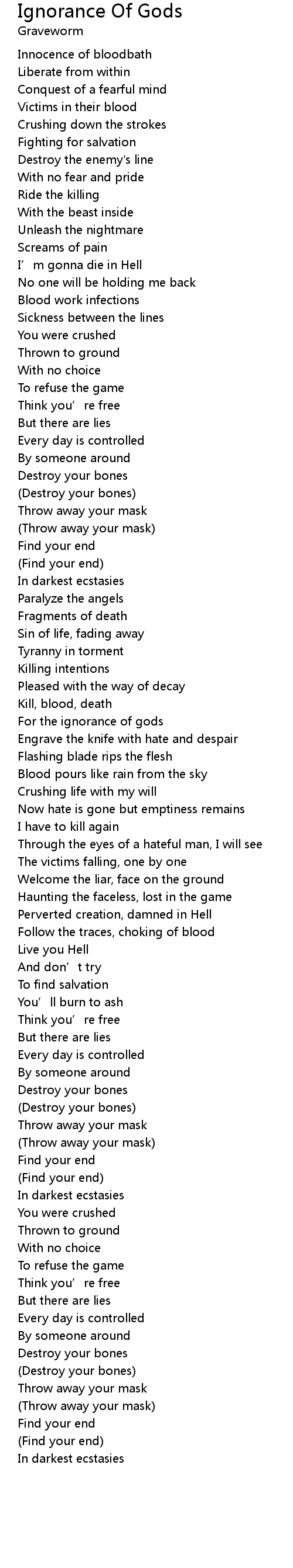 | Song | Ignorance Of Gods |