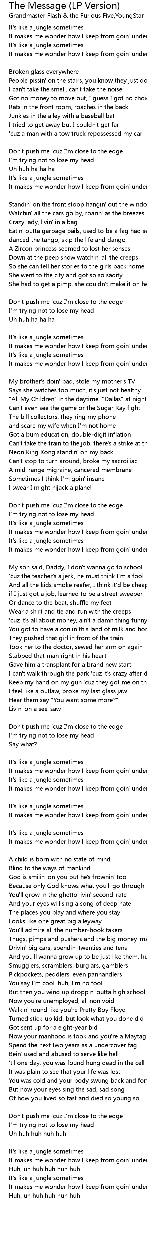 Don't push me 'cuz I'm close to the edge |