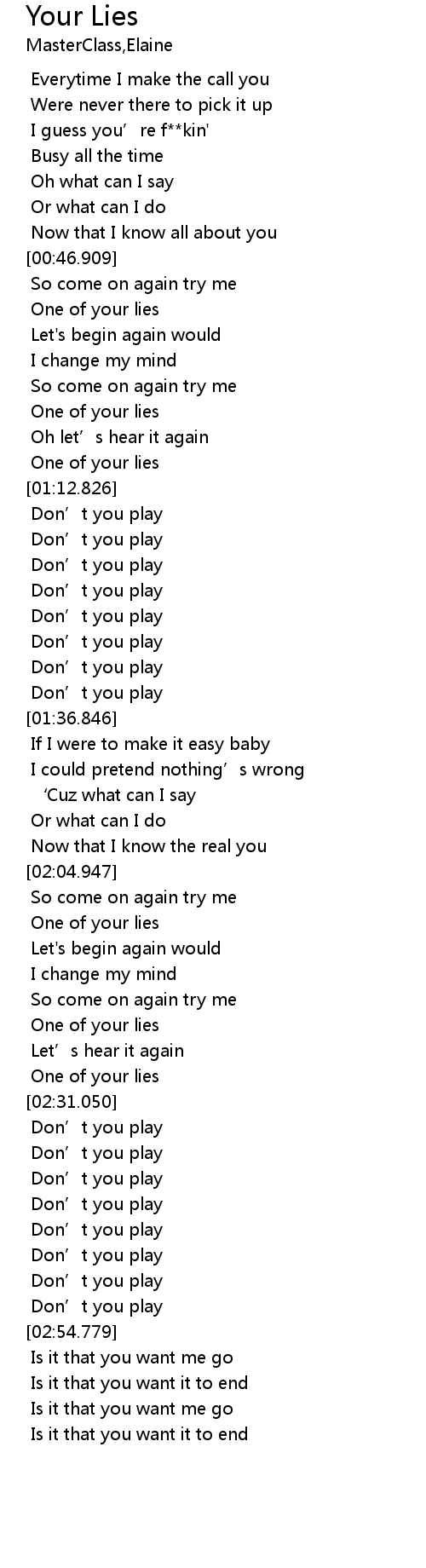 | [02:29.037] | One of your lies |