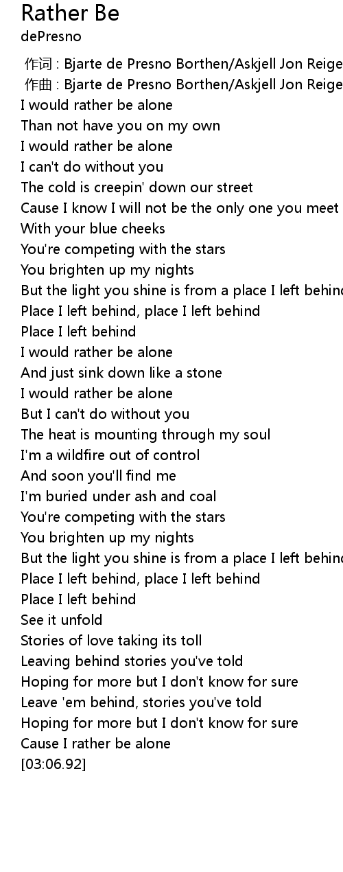 | [00:12.91] | I would rather be alone |