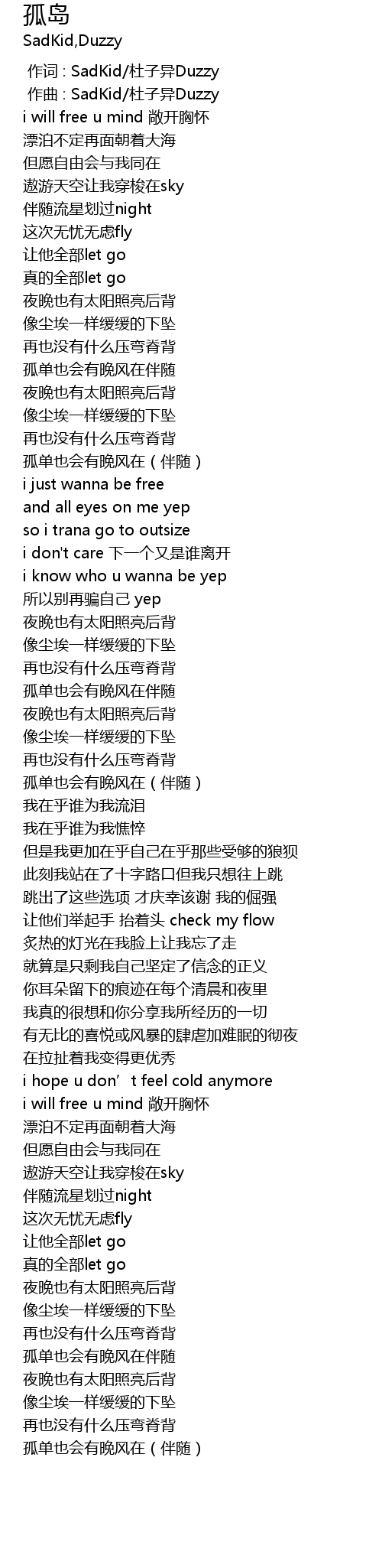 | [00:00.000] | 作词 : SadKid/杜子异Duzzy |