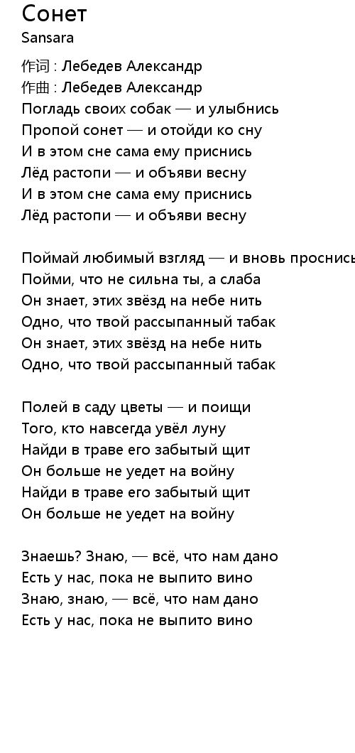 Пропой сонет — и отойди ко сну |