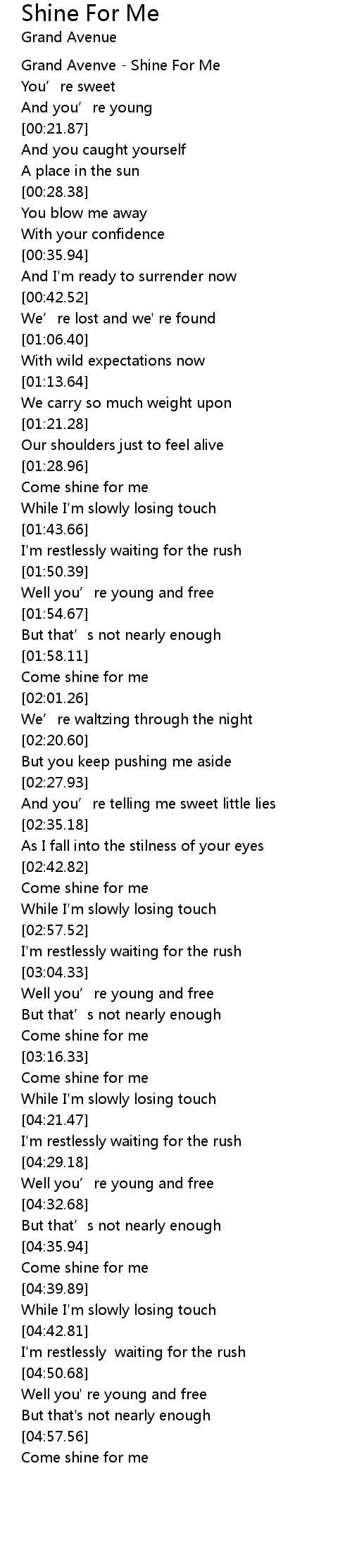 | [00:01.12] | Grand Avenve - Shine For Me |