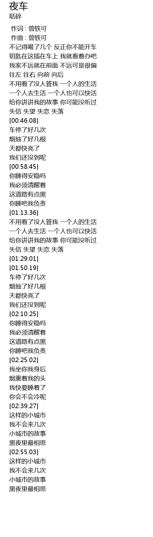 | [00:46.50] | 车停了好几次 |