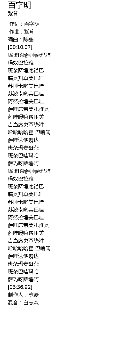 | [03:38.92] | hùn yīn: bái zhì sēn |