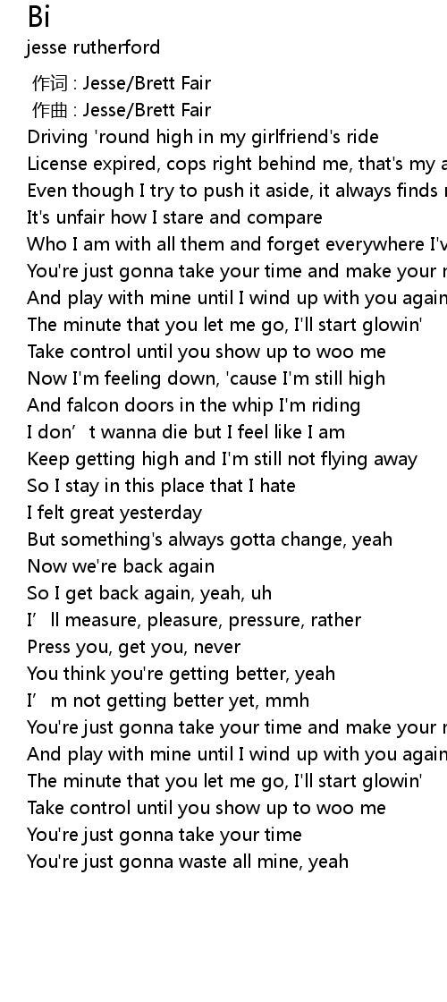 | [00:01.000] | 作曲 : Jesse/Brett Fair |