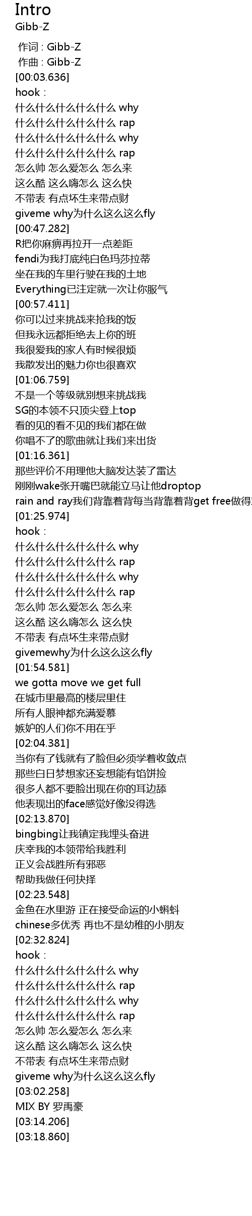 | [00:00.000] | 作词 : Gibb-Z |