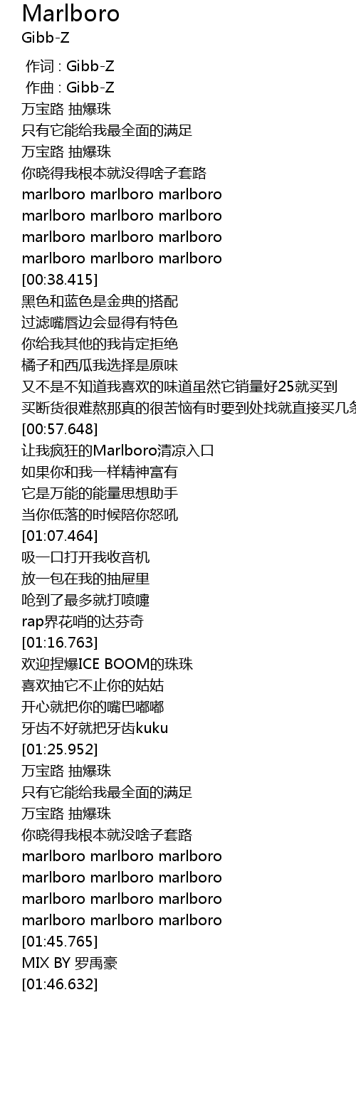 | [00:58.220] | 让我疯狂的Marlboro清凉入口 |