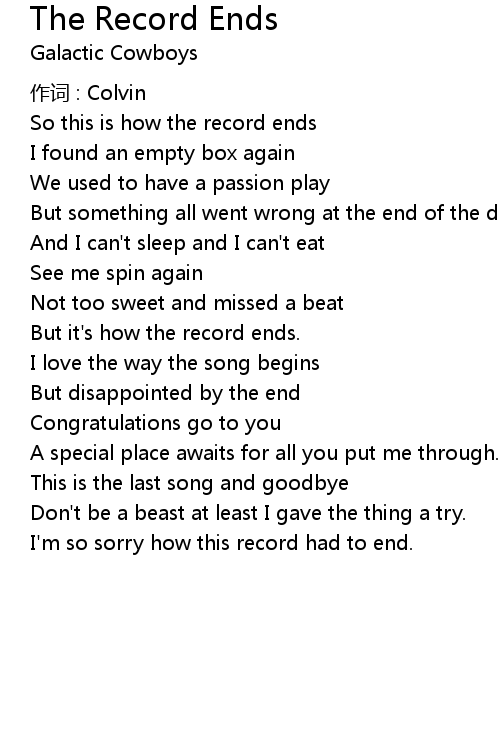 | Song | The Record Ends |