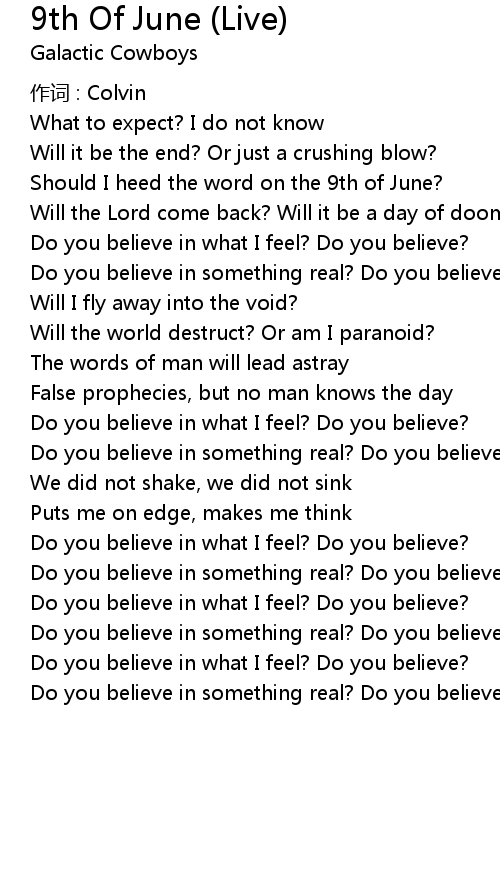 | Should I heed the word on the 9th of June? | |