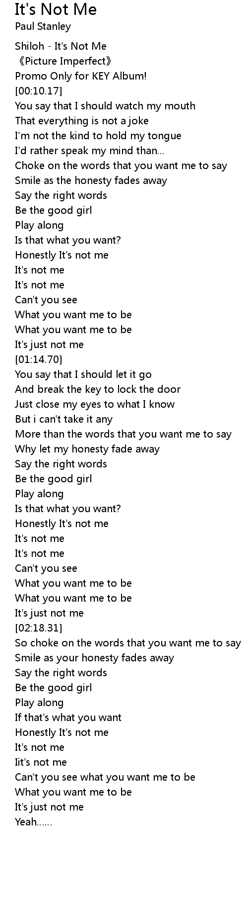 | [02:04.63] | It' s not me |