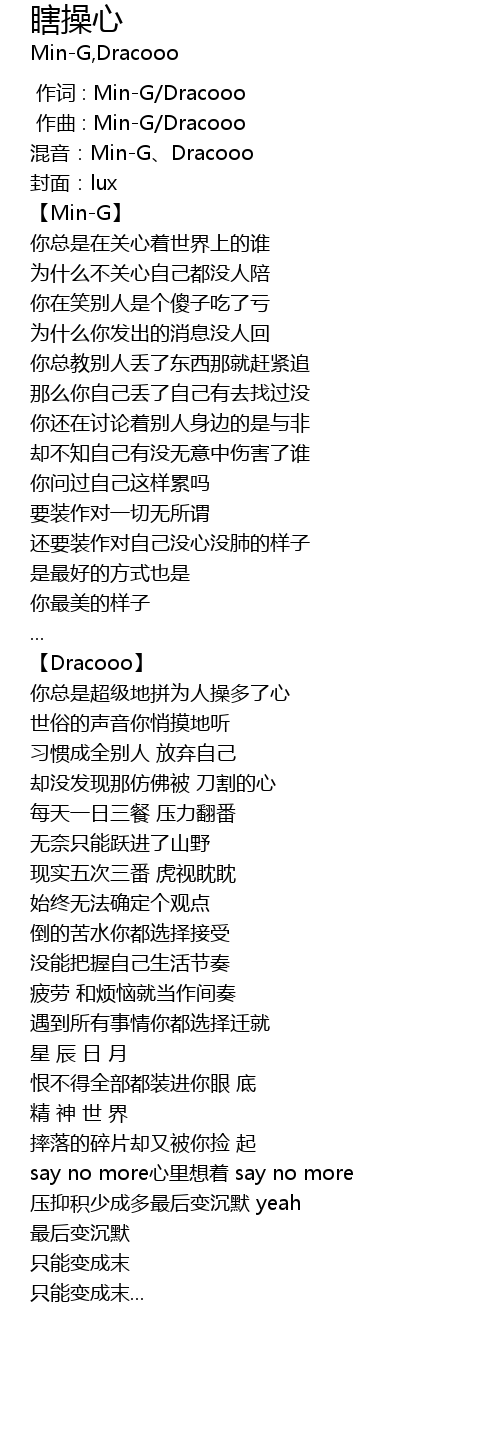 | [00:00.000] | 作词 : Min-G/Dracooo |