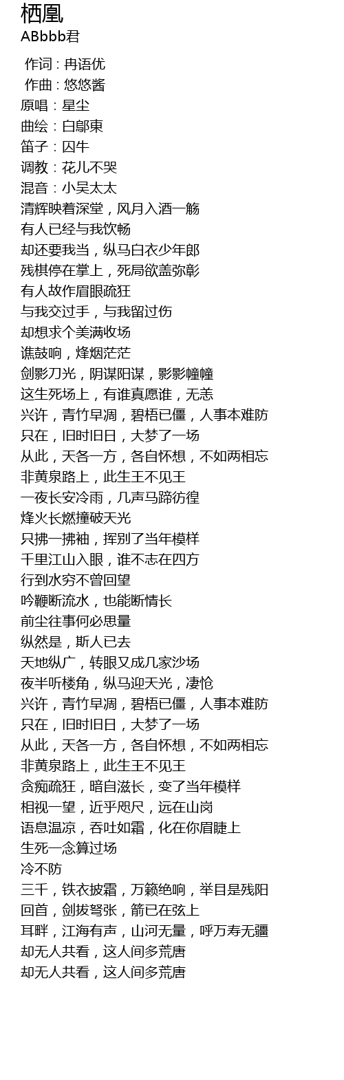 | [01:58.17] | 夜半听楼角,纵马迎天光,凄怆 |
