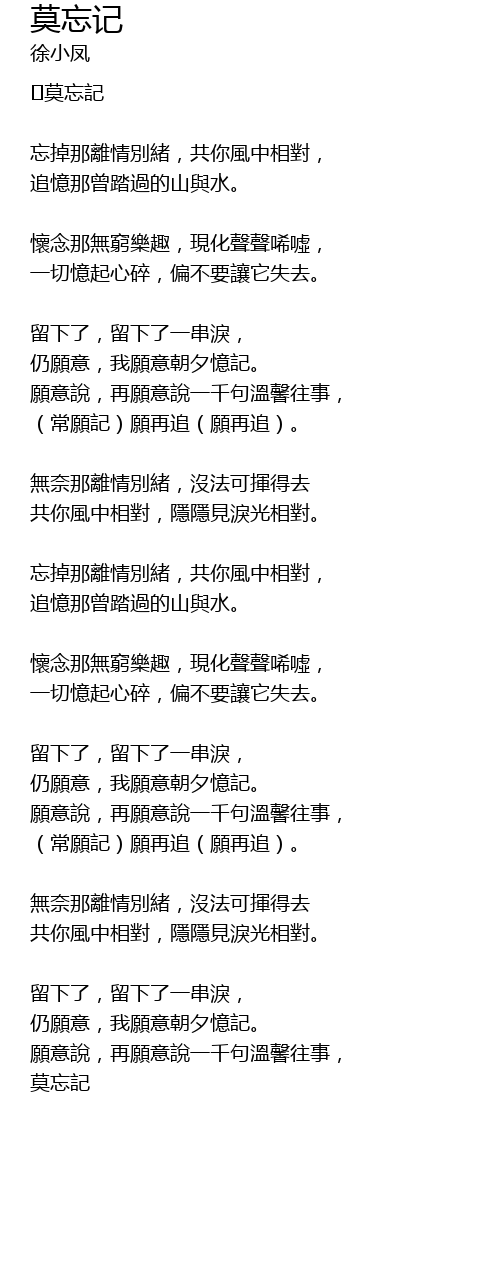 | 懷念那無窮樂趣,現化聲聲唏噓, | |