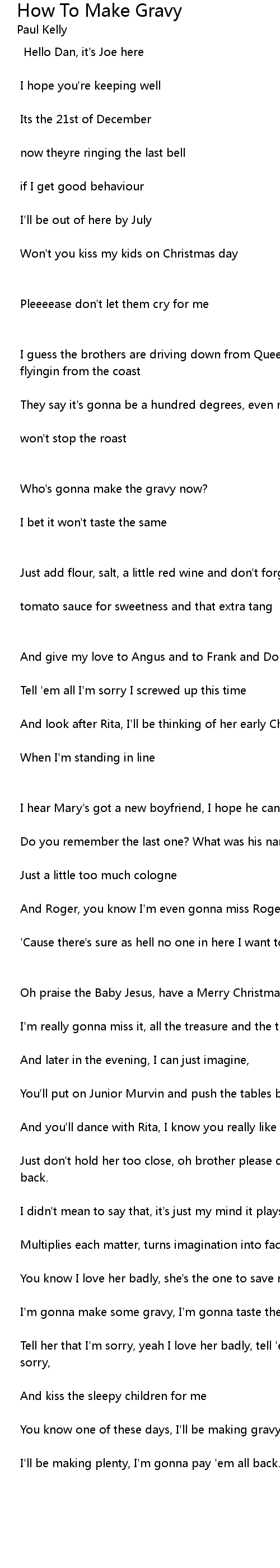 I'm gonna make some gravy, I'm gonna taste the fat |